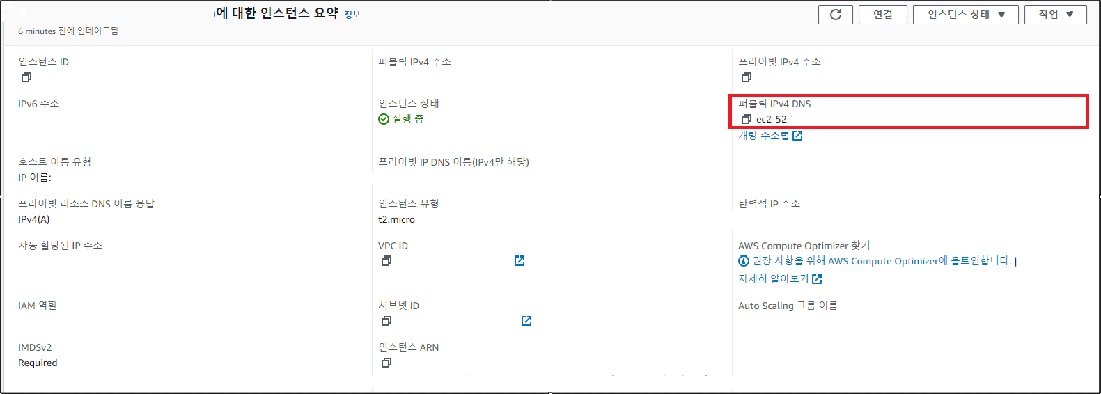 퍼블릭 IPv4 DNS 주소가 필요합니다.