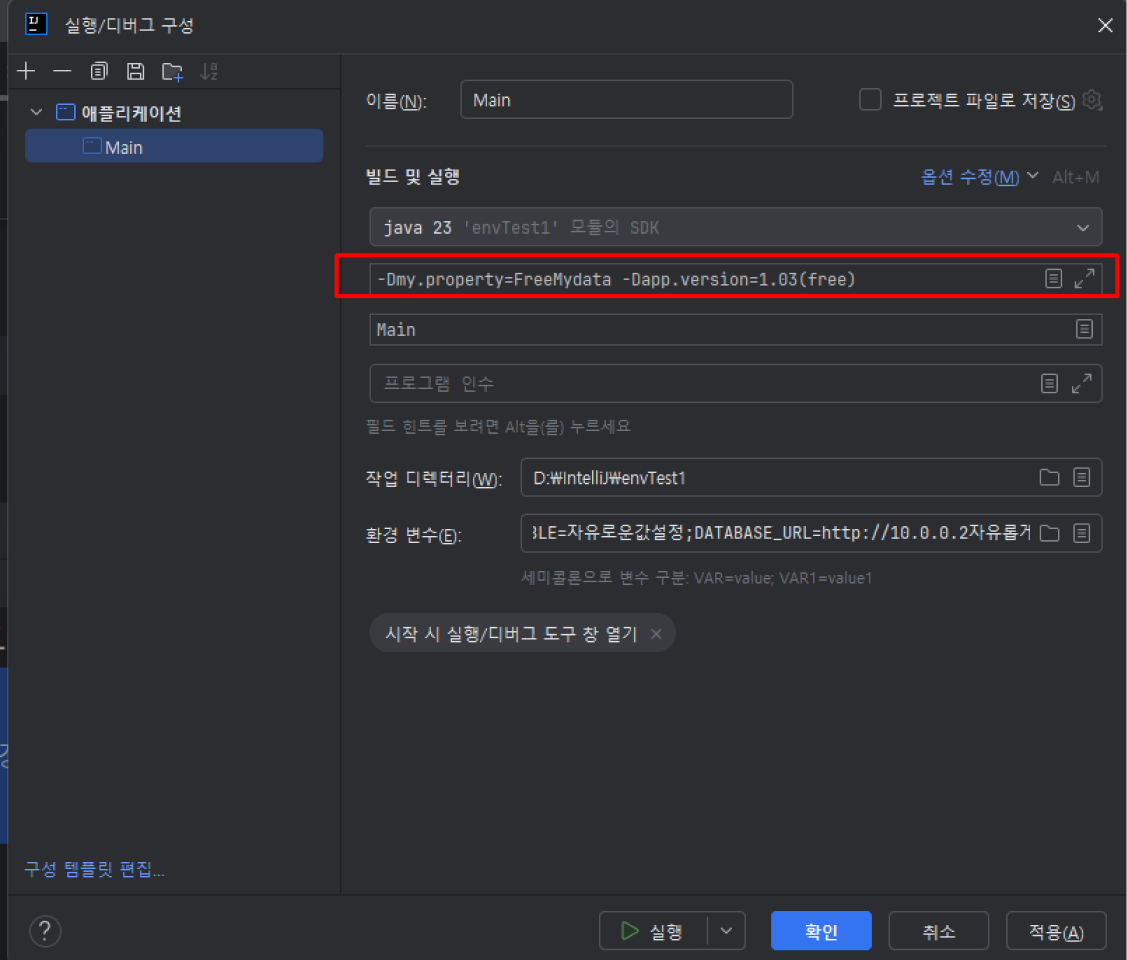 저번글과 비슷한 내용인데요. 이번엔 인텔리제이에서 환경변수 설정을 하는 방법을 알아보겠습니다.
