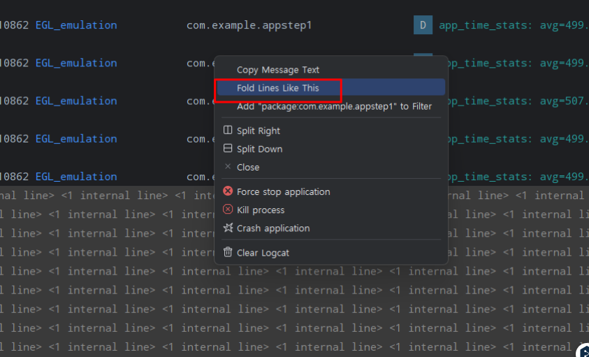 필터링을 통해 저 로그문을 안보이게 할 것이다.